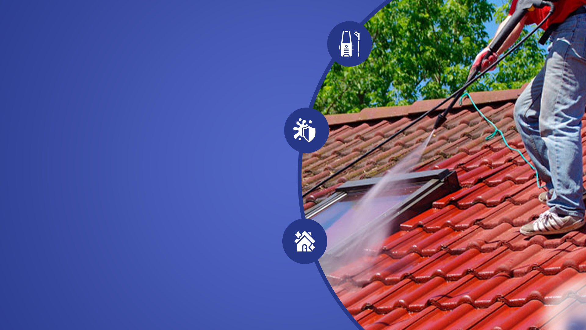 Remoção completa de sujeiras, musgos e limo com técnicas profissionais que preservam seu imóvel.